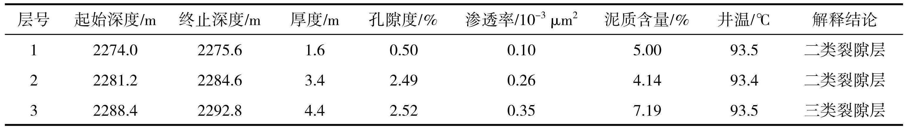 ZK-01勘探井钻探施工阶段及结束后共进行 5 次物探测井工作,测井项目包括:连续测温、井斜测井、电阻率测井、自然电位测井、声波时差测井等,该井雾迷山组出水层测井解释成果见表1。