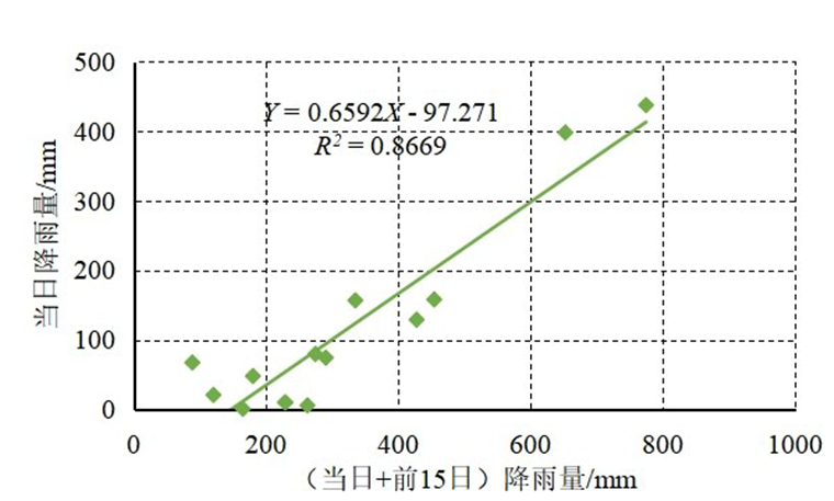 图11当日与(当日+前15日)降雨量相关性拟合图