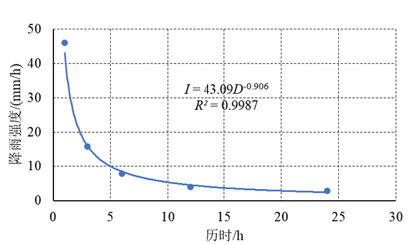 图5B011附近6月25日灾情降雨强度-历时拟合图