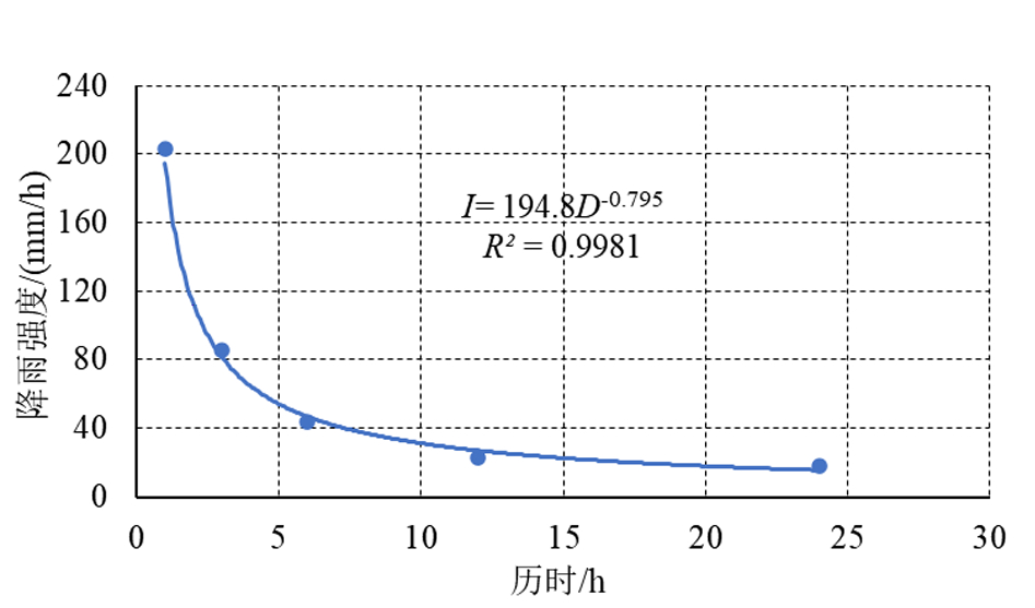 图6H001附近7月12日灾情降雨强度-历时拟合图