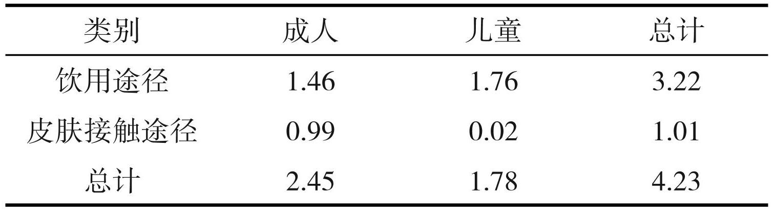 表14饮用途径和皮肤接触途径下不同重金属风险值