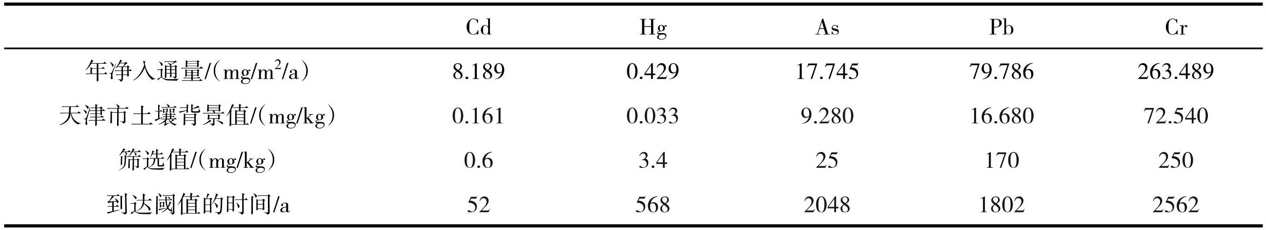 表10重金属年净输入通量和达到农用地土壤污染风险管控标准的时间