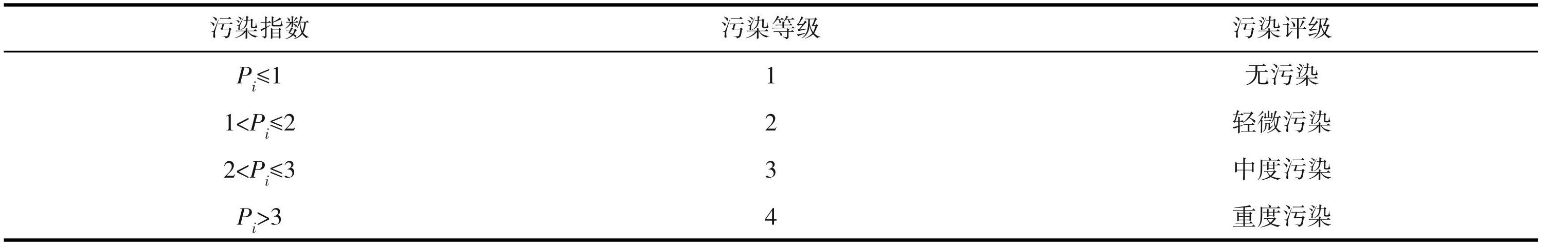 表2单项污染指数评价等级