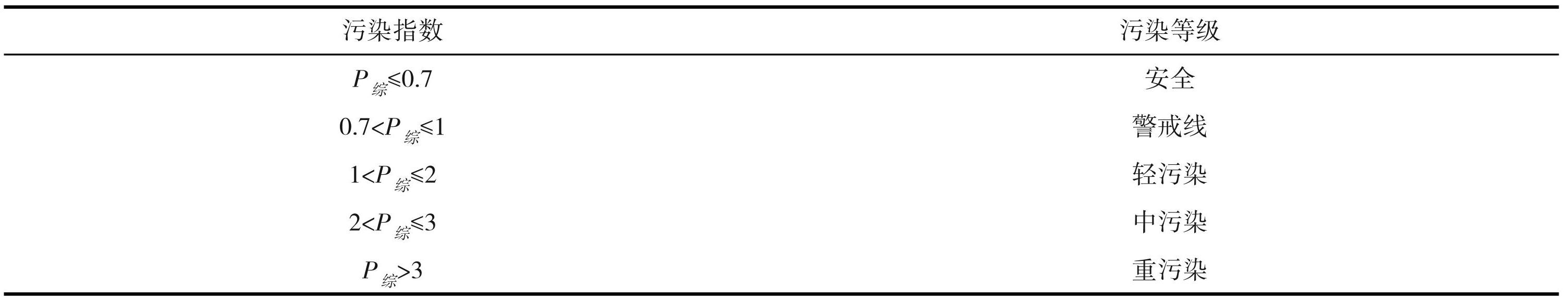 表3综合污染指数评价等级
