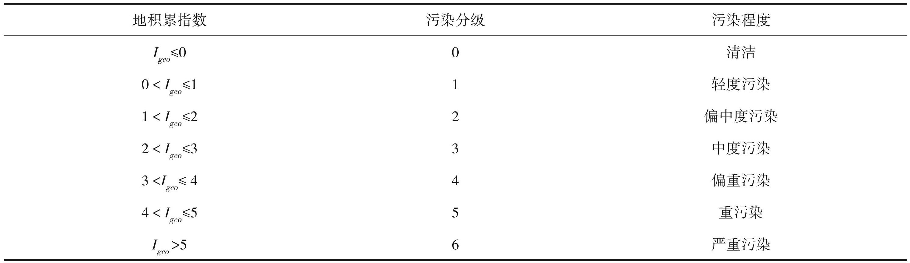 表4重金属地积累指数法污染等级分类