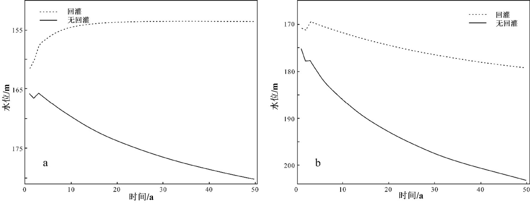 a—回灌条件下;b—未回灌条件下