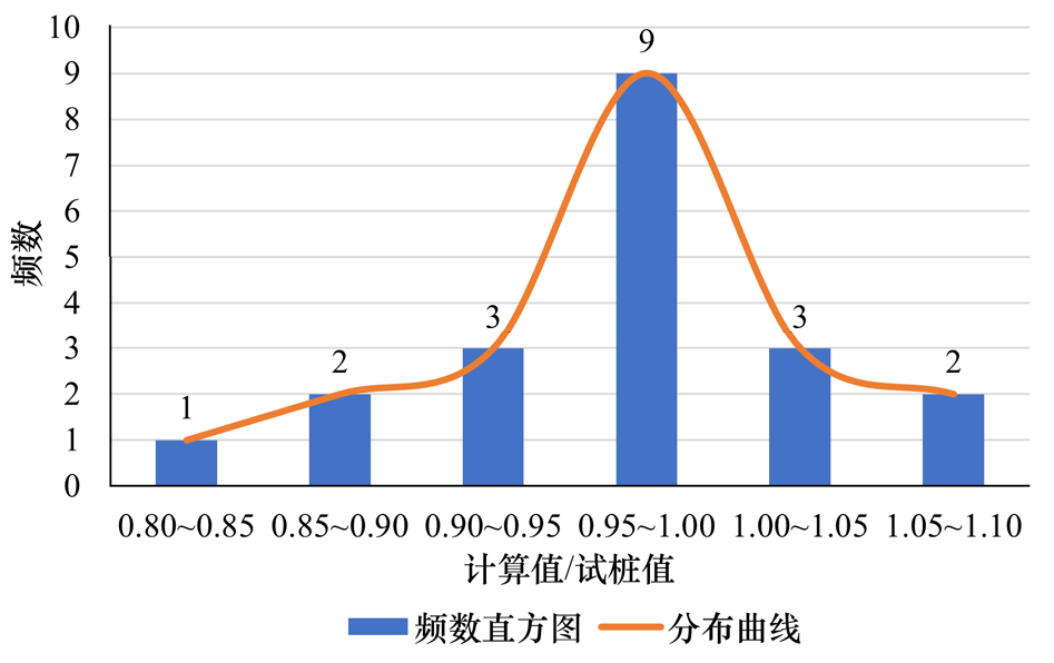 图2公式计算值/试验值的比值频数直方图及分布曲线