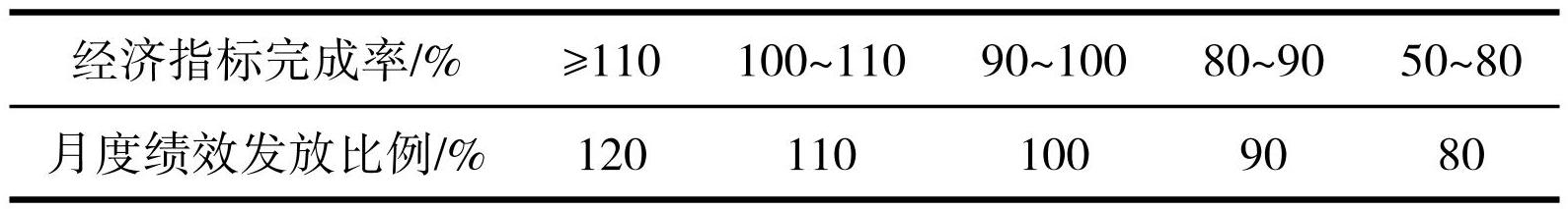 表1经济指标完成率与绩效发放比例