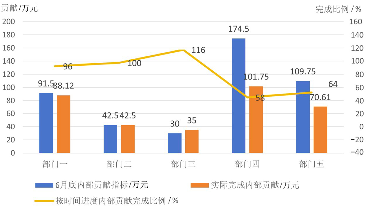图3内部贡献指标、实际完成指标、按时间进度完成率指标对比图