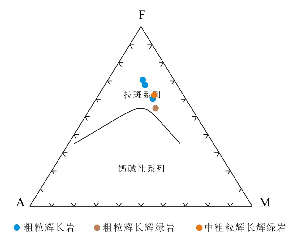基性岩类铁、镁质含量高,基本不含石英,主要由辉石和基性斜长石组成。这类岩石在全球范围内广泛分布,由于其形成过程通常与地壳的扩张、板块的分离或地幔热柱的活动紧密相关(张旗等, 1999),可以为探讨区域构造演化提供理论依据。同时,基性岩或作为金矿容矿的载体,或为金成矿提供物质来源,二者在时间和空间上往往存在着密切的联系(韦朝文等,2018;蔡厚安等,2022;张星培等,2024)。