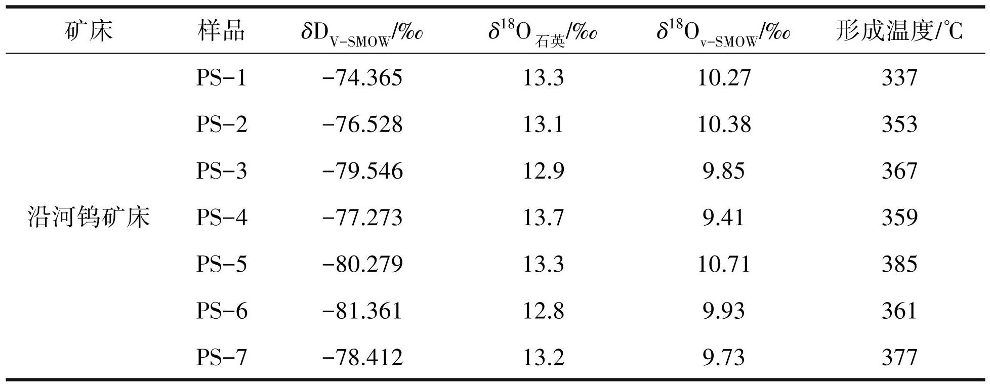 表4沿河钨矿床含钨石英脉石英氧测试及流体包裹体氢同位素计算结果