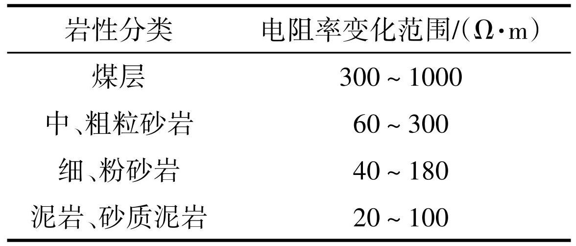 表1煤、岩层电阻率变化范围一览