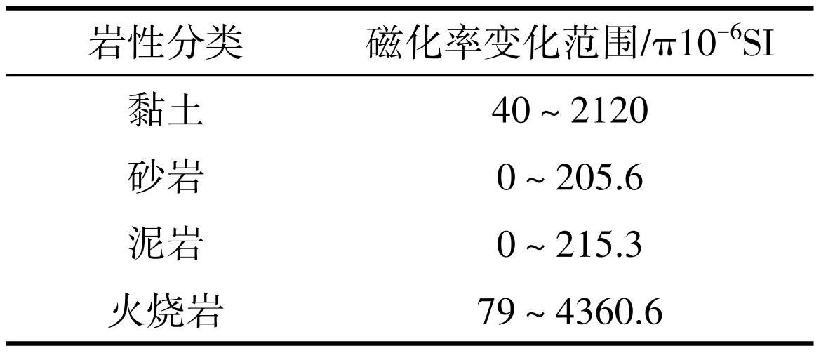 通过对研究区出露地表和钻孔得到的火烧岩、黏土、砂岩、砂泥岩进行磁参数测定,得到了该区磁物性参数资料(表2)。