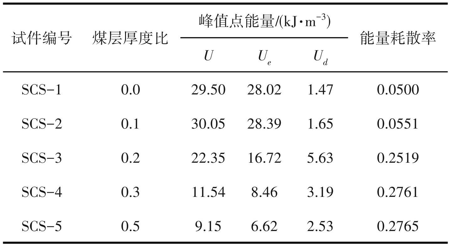 表1不同煤层厚度比组合体应力峰值时的能量值