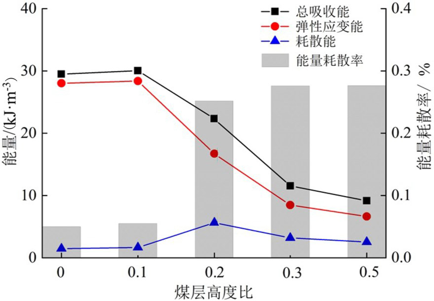 图5不同煤层厚度比组合体能量转化统计