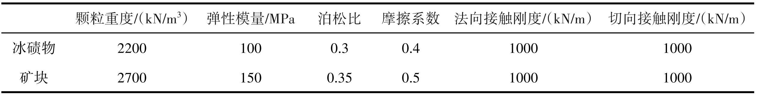 (3)基于已有的试验结果及研究选取冰碛物摩擦系数取值为0.4,矿块摩擦系数取值为0.5。