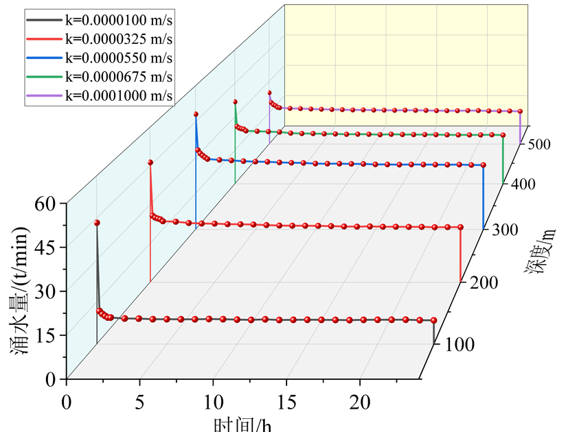 图10渗透系数与深度联合作用对涌水量的影响