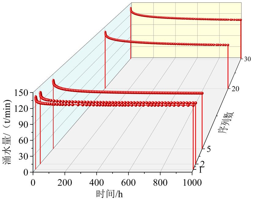 式(2)中,Q0为初始涌水量(m3 /s),τ为时间间隔 (s)。