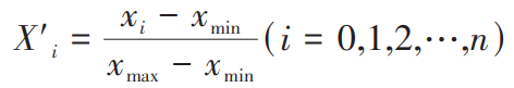 式(1)中,X'i为指标经标准化处理后的值,xi为指标原数值中的第 i个,xmax为指标中原数值中的最大值,xmin为指标中原数值中的最小值。