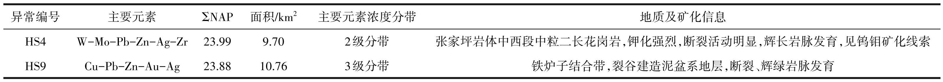 表5HS9异常主要元素特征参数
