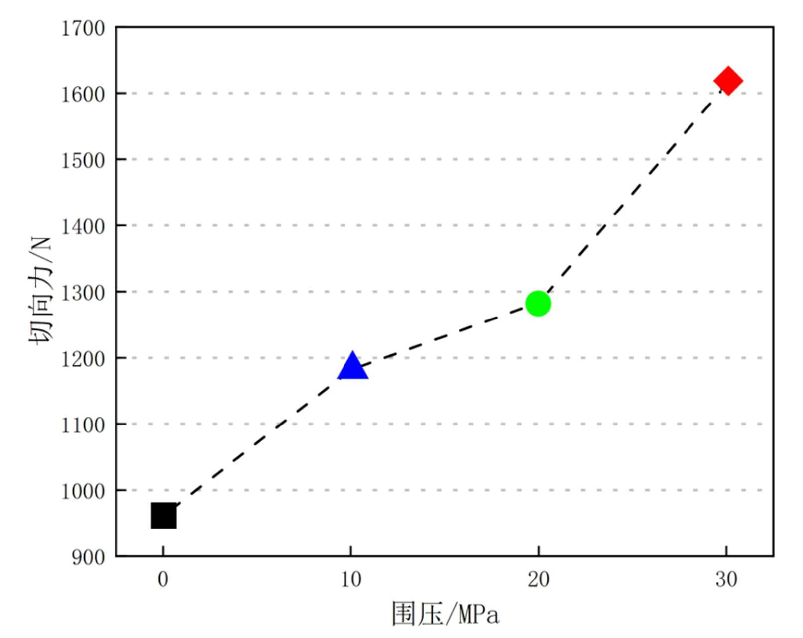 图10平均切向力与围压的关系曲线