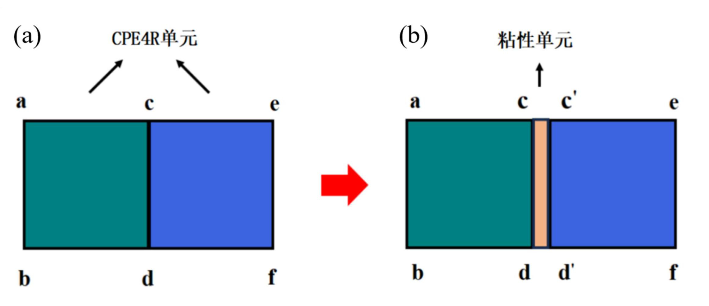 图5单元连接情况(a)和加入黏性单元的连接情况(b)