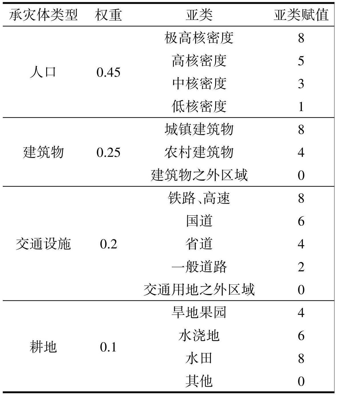表5研究区易损性赋值数据