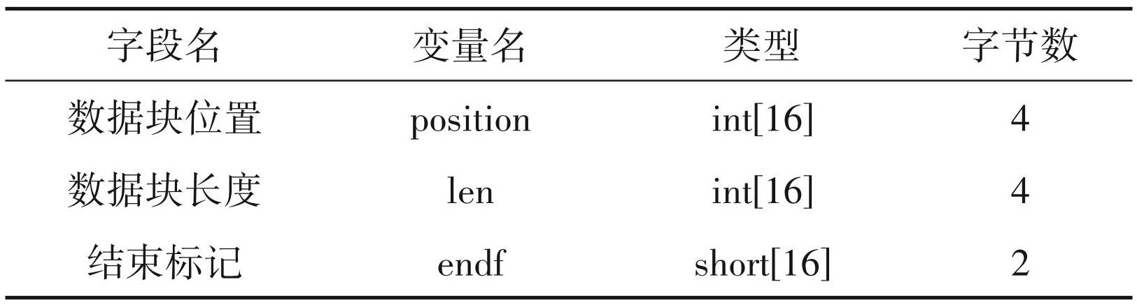 利用UltraEdit软件打开线文件,并结合MapGIS 软件对线文件的显示以及前人的研究(王星捷, 2013;杨艳林等,2020),可将线文件存储的数据分为 3个数据段:①前面的 657个字节,主要用于记录线文件标识(57 4D 41 50 60 44 32 31)、地图参数(投影参数、单位及比例尺、图幅范围等)和线条数(图1)。②紧接着的 160 字节是用于记录 16 个数据块的位置、长度(图2),16个数据块中目前主要使用的有5个。参考MapGIS安装目录中的baseDefine. h文件,其数据结构如表1。③其后是存放各数据块的具体数据。