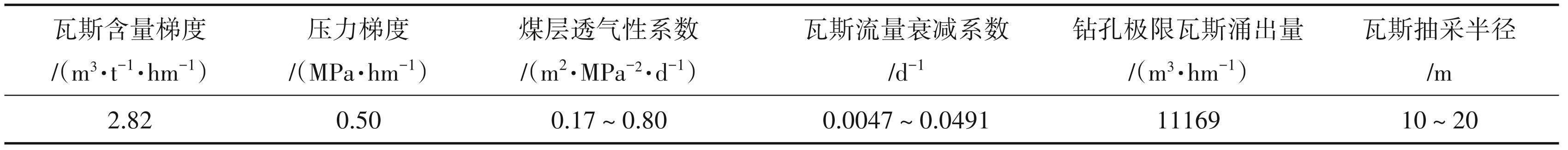 结合保德煤矿定向钻孔实际应用情况,以二盘区 81209、81210 和 81211 工作面为例,进行区域瓦斯治理效果预测,工作面瓦斯含量预计为 7.76~8.96 m3 /t。按照《瓦斯抽采达标暂行规定》,实现采前预抽达标,吨煤瓦斯含量降低至 5 m3 /t以下,具体信息如表5所示。
