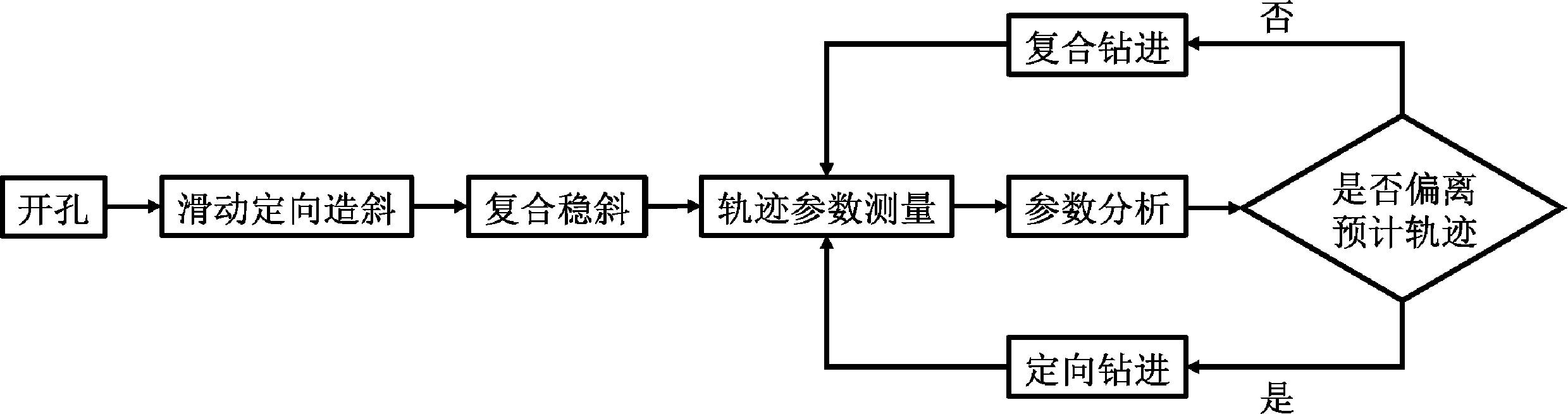 超长复合定向钻进轨迹控制的关键在于孔底螺杆弯外角不断转动,通过优化钻进参数使处于稳斜阶段的钻孔快速钻进,当钻孔轨迹超出可控范围之外时,再通过滑动定向钻进纠斜调整钻孔轨迹,周而复始的进行“滑动纠斜+复合稳斜”完成钻孔钻进(王鲜等,2019;金鑫等,2022),复合定向钻进技术钻进工艺流程如图3所示。