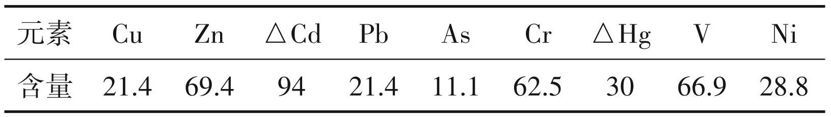 重金属元素测试:对于 Cd、Cu、Pb、Cr、Zn 和 Ni 含量采用电热板消解方法,称取0.1 g的200目样品置于聚四氟乙烯坩埚中,用优级纯的硝酸、氢氟酸和高氯酸消解在电热板上消解约5 h,后加1∶1的王水浸提至 50 mL,过 0.45 μm 滤膜,在 PE 公司生产的 ICP-OES(OPTIMA8000)上进行测试对于 As 和 Hg 元素,称取 200 目样品 0.1 g,用 1∶1 的王水消解后采用原子荧光法(AFS)测定,测试仪器采用AFS-9700,重金属元素测试标准物质均采用GBW07452。