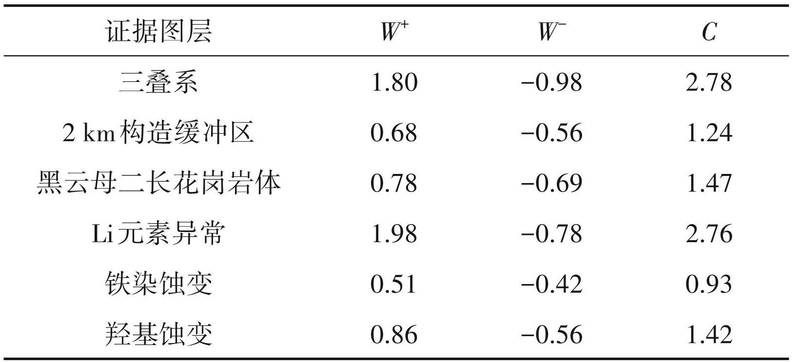 喀喇昆仑地区发现了多处锂矿点,但尚未开展综合性的定量分析和预测工作。本次预测工作在综合找矿模型的基础上,采用证据权法进行。