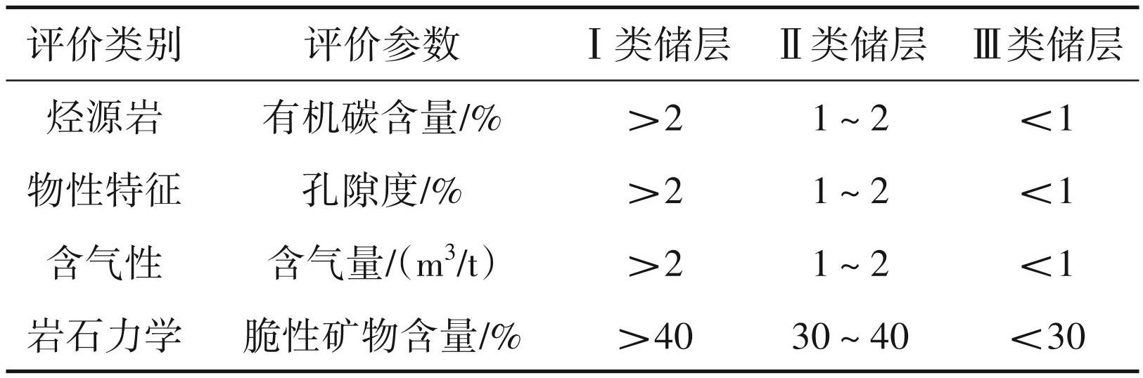甜点参数主要有岩相、泥页岩厚度、有机质成熟度和黏土矿物含量等关键参数(李国荣等, 2022)。综合《四川盆地五峰组—龙马溪组页岩储层标准》(于荣泽等,2020),《煤系泥页岩气储层评价指标体系》(梁正中等,2019)与本区探井储层评价结果,初步建立中牟地区太原组泥页岩储层分类标准(表4)。依据中牟 2井太原组各小层泥页岩层段的岩性、地化、物性及含气性、岩石力学等特征参数进行储层分类,太原组④小层介于Ⅰ类储层Ⅱ类储层之间,②小层、⑥小层为Ⅱ类储层储层,③小层介于Ⅱ类储层与Ⅲ类储层之间,①小层、⑤小层、⑦ 小层为Ⅲ类储层。②~④小层厚度 26.4 m,泥页岩厚度 20. 01 m,整体厚度较大,且横向分布稳定,是水平井靶体和体积压裂设计的重点段。⑤小层底部4 m灰岩与①小层顶部灰岩为②~④小层目标层段形成较好的上下压力隔挡层;为提高入靶和水平井轨迹穿行钻遇率,压裂能上下兼顾。综合各小层储层参数,优选②小层顶部高 GR 段为钻井定向标志层和水平井穿行段。