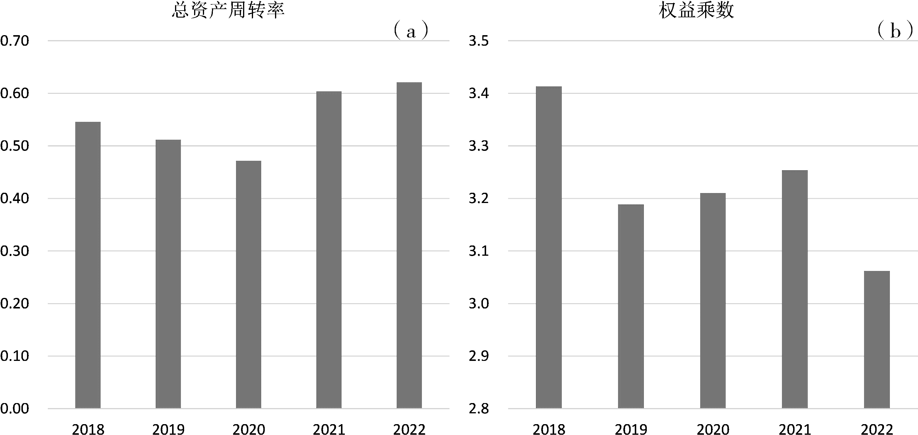 图7 煤炭板块近5年总资产周转率(a)和权益乘数(b)情况