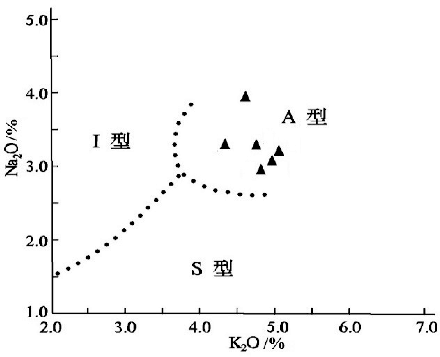图3 岩体类型判别图(底图据Rickwood,1989)