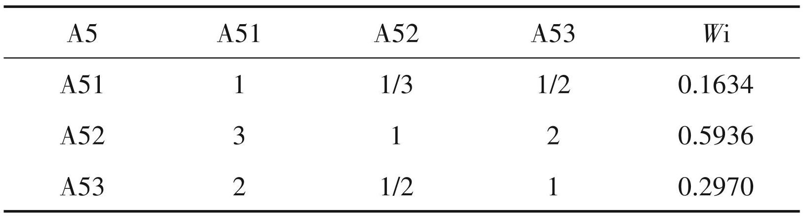 由AHP法确定的权重,即构成对应要素的权重集W={W1,W2,W3,W4,W5}。