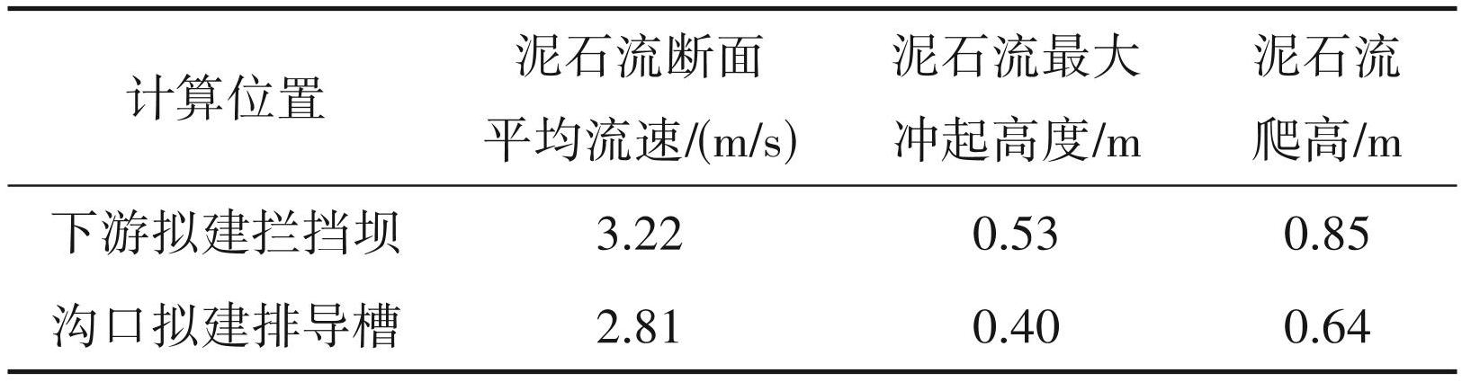 按20年一遇暴雨强度的设计标准,泥石流主要运动特征参数见表10。