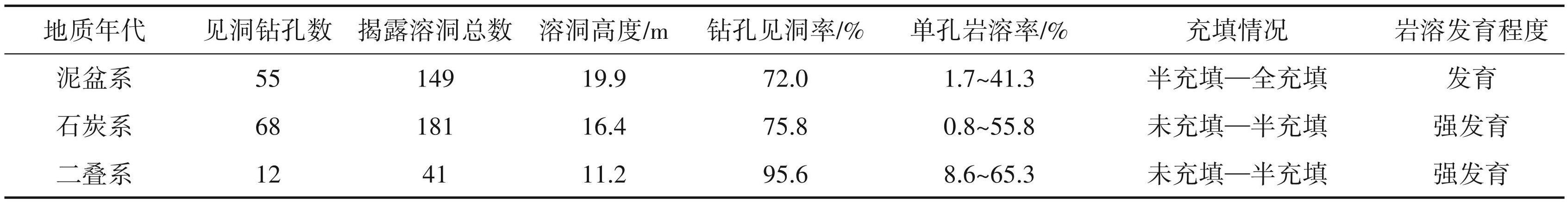 综上,惠州地区二叠系岩溶发育程度强于石炭系,石炭系岩溶发育程度强于泥盆系。