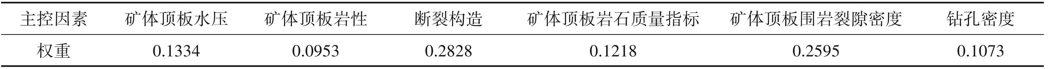 利用线性加权法将一级指标的权重值与其下属的二级指标权重值相乘,最终得到各二级指标对矿区突水风险性的影响权重(表6)。
