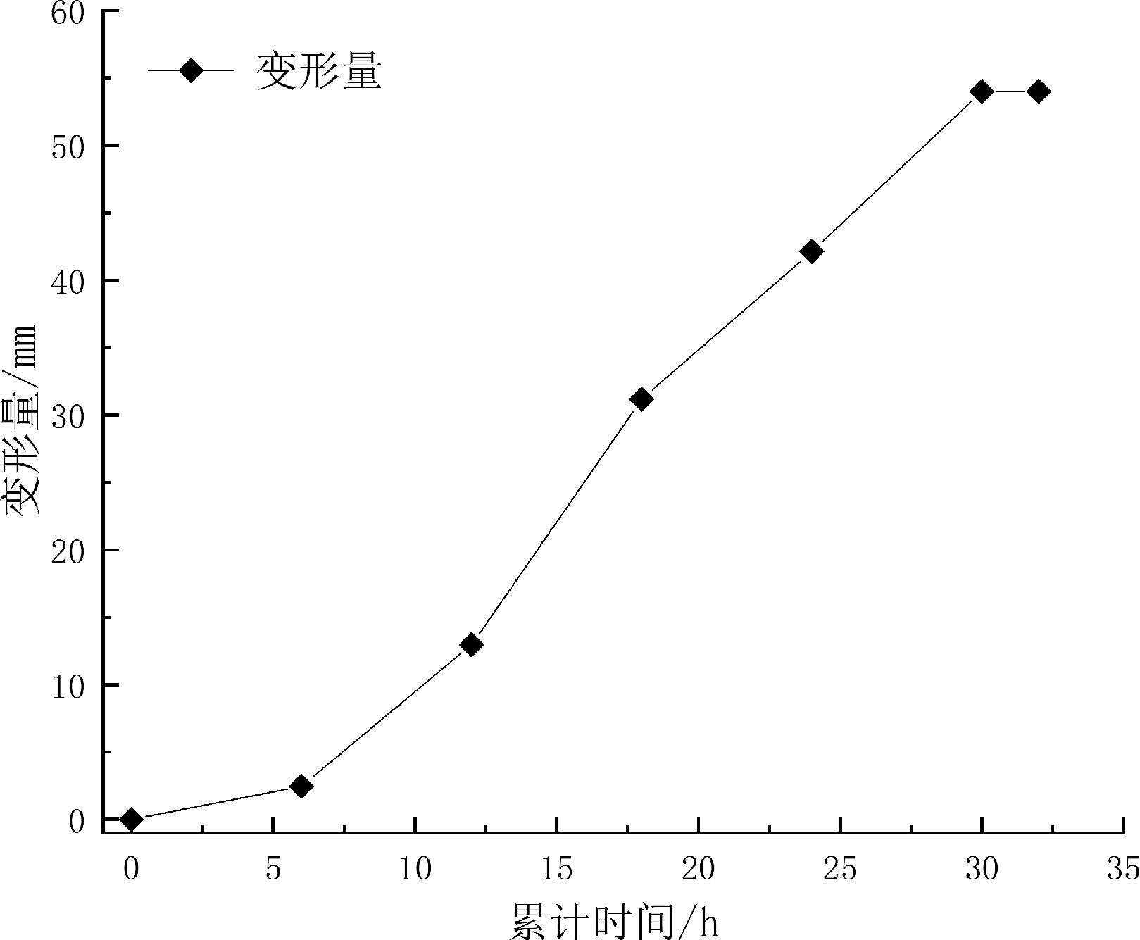 福建省西南部地区降雨量集中且充沛,降雨作用下,岩层表面较为松散的堆积物易被冲刷滑落下来,对边坡的稳定性和矿区开采作业带来较大影响。选取福建省西南部地区某金属露天矿山的某区域进行分析,并以集中降雨工况作为切入点进行分析。该地区每年的3—6月为雨季,取2023年5月 7日 0时至 2023年 5月 8日 6时时段进行分析,降雨开始时间为5月7日0时,5月7日3时出现强降雨,5 月 8日 5时左右降雨逐渐变小,降雨冲刷作用下,该区域西北帮 628-652 台阶出现裂隙扩大现象,根据现场监测设备数据进行分析,变形规律如图5所示。