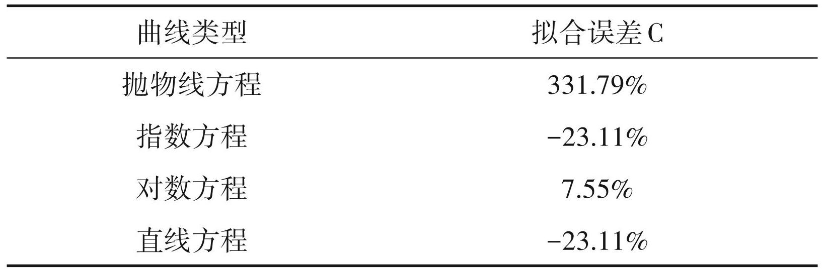 分别对抛物线方程、指数方程、对数方程及直线方程的适合情况进行拟合计算,计算结果见表3。比较发现,对数方程拟合误差最小,仅为 7.55%,故该抽水试验适合于对数曲线方程:Q=a+b×lgS。