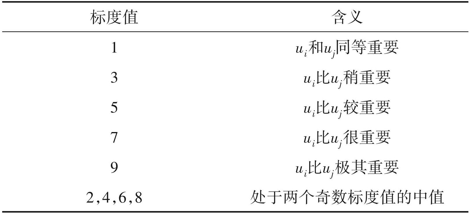 式(6)中,CR是判断矩阵的随机性比率,CI是判断矩阵的一致性指标。CI可以表示为,因此可以得出: