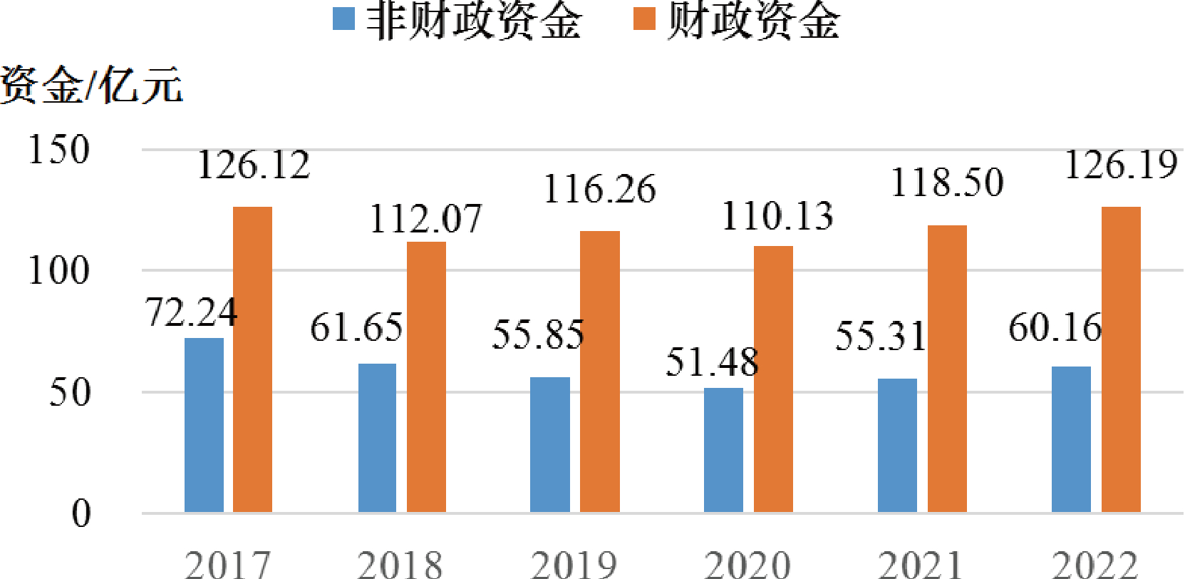 图2 全国非油气地质勘查投入中财政资金与非财政资金变化