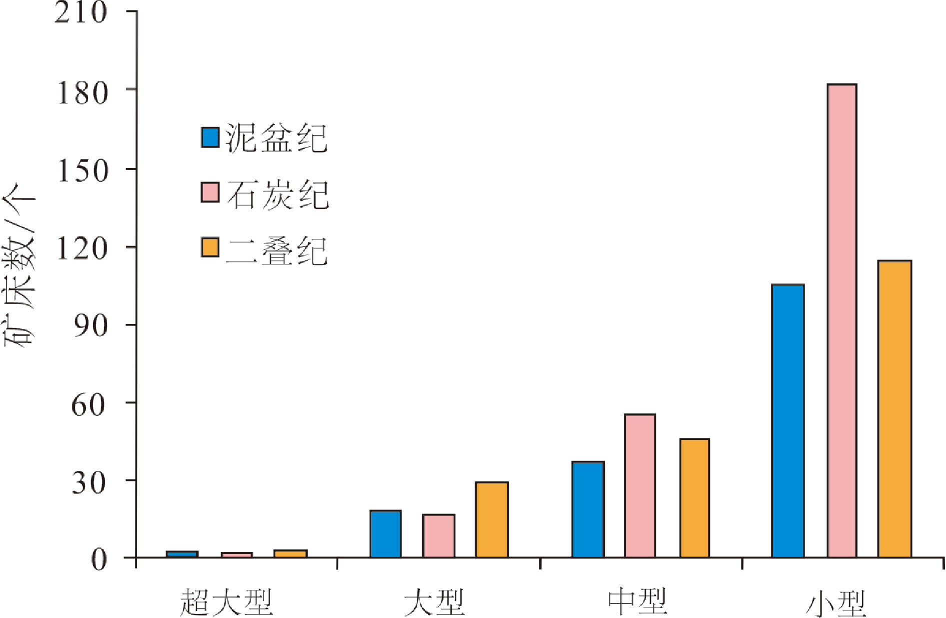图7 晚古生代沉积作用矿床按规模统计分布图