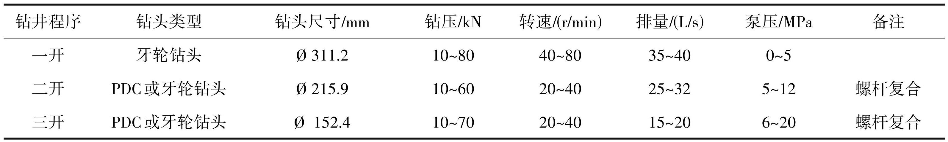 三开:Ø152.4 mmPDC(或牙轮)钻头+Ø120 mm 螺杆+Ø120 mm无磁钻铤+Ø89 mm钻杆。