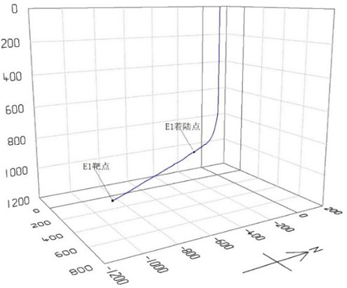 (1)淮南张集矿东-1煤上采区多分支水平注浆井E1主孔钻至2022.39 m完钻,终孔垂深988.74 m,水平位移1195.82 m,通过无线随钻测量系统实时监测控制钻井轨迹,最终钻井水平段实际轨迹与设计轨迹偏差均未超过 2 m,水平段实钻轨迹较设计轨道终孔靶点偏差为 1.78 m,均符合钻井轨迹控制要求。