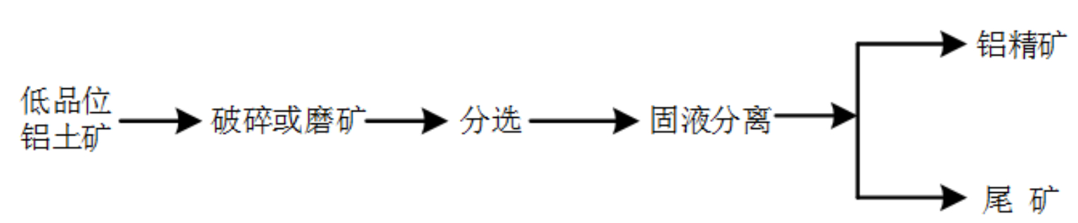 物理选矿脱硅工艺的特点是:在不改变铝土矿所含矿物性质的情况下,除去以硅酸盐为主的含硅脉石矿物,从而实现提高铝土矿品质的目的(杜五星等,2016)。其原则流程如图4。常用的方法有:分级脱硅法、重选脱硅法、浮选脱硅法,其中浮选脱硅法的产业化应用最为广泛。