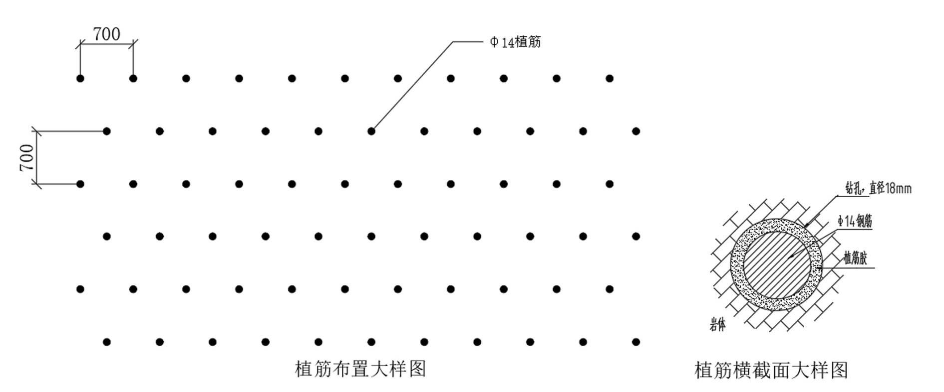 图9 植筋布置图及大样图