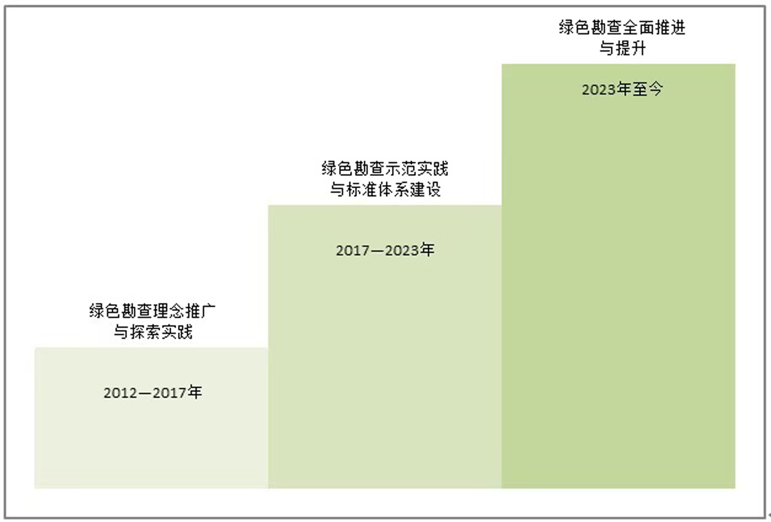 在绿色勘查示范实践与标准体系建设阶段,政府对绿色勘查的重视程度进一步提升,在绿色勘查领域的制度化、规范化和实践推广方面的显著进步,为绿色勘查的深入实施和可持续发展奠定了坚实的基础。