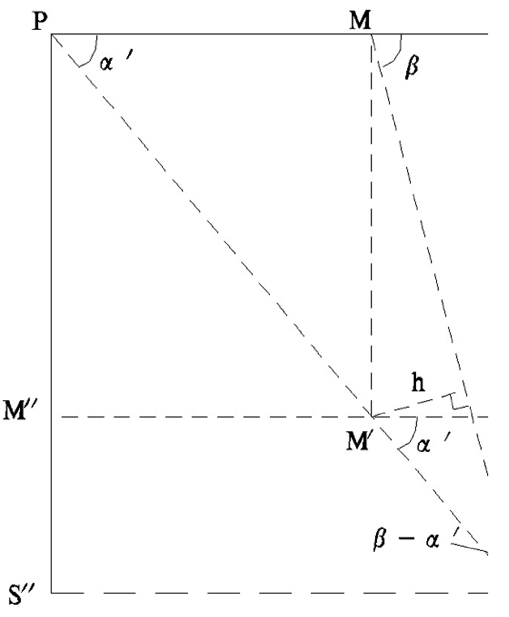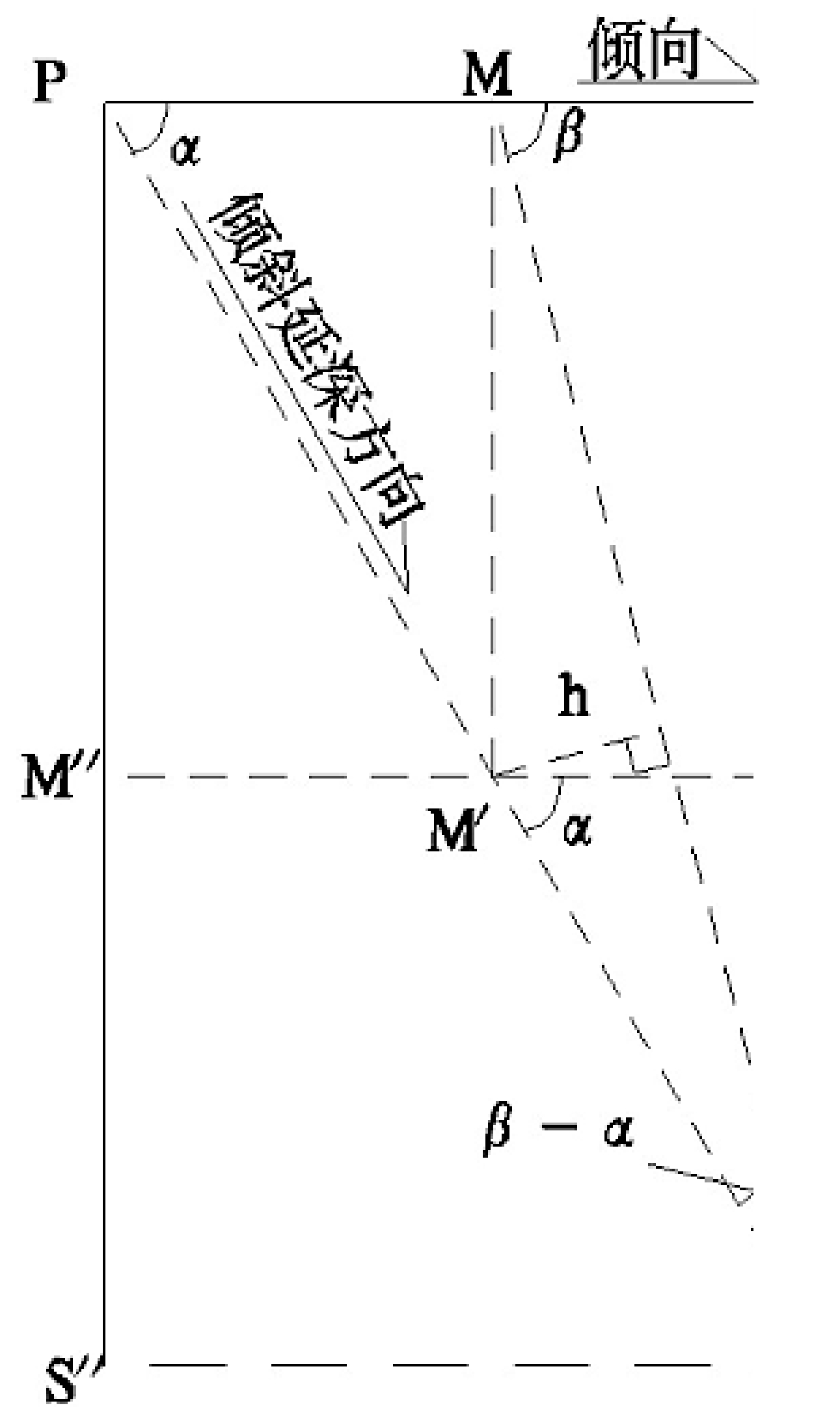 所以h/M'S'=sin(β-α),M'S'= h/sin(β-α)。
